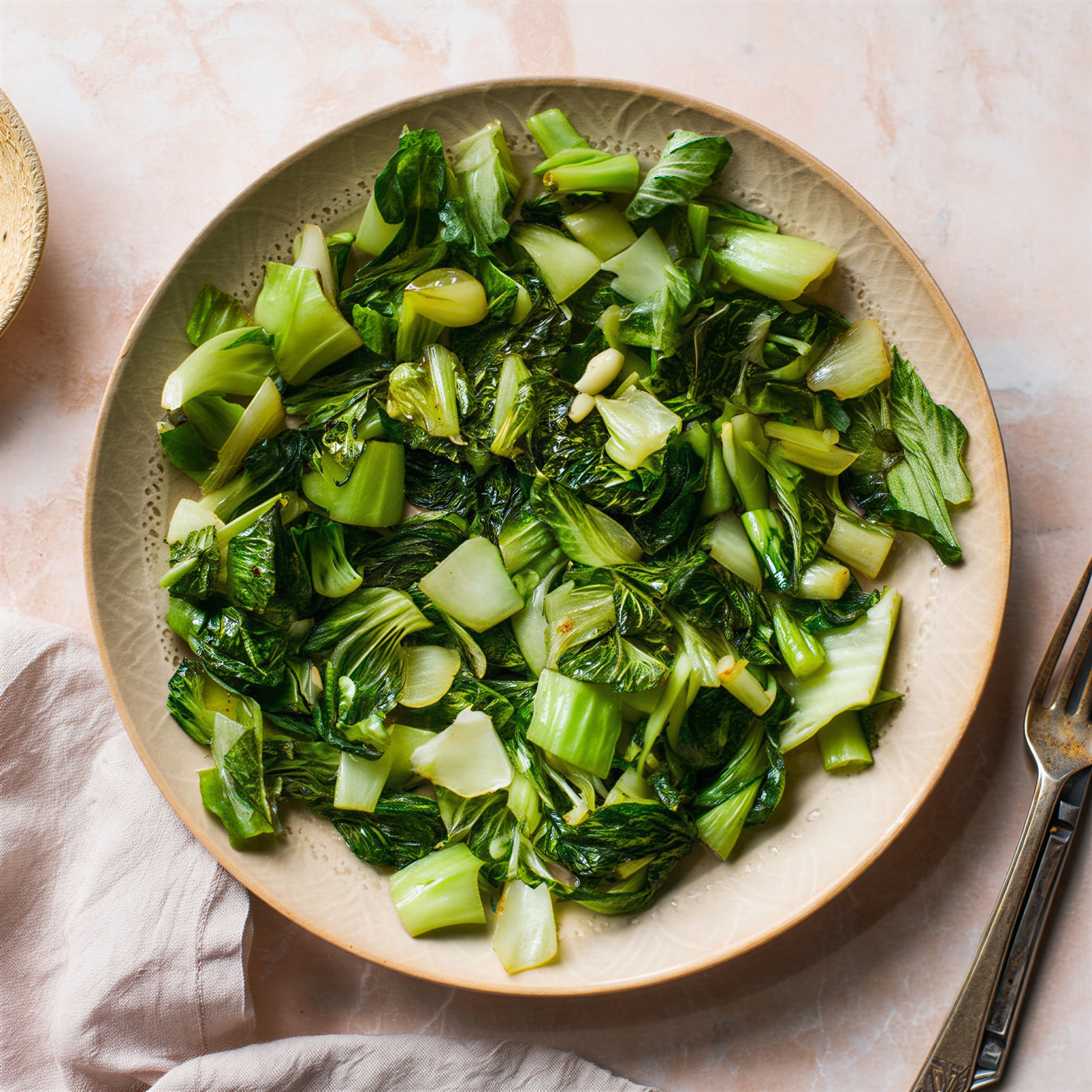 - Добавьте пак-чой, перемешайте. Готовьте 5-7 минут, периодически переворчивая, пока стебли не станут мягкими, а листья нежными. Листья не должны поменять цвет, не передержите.